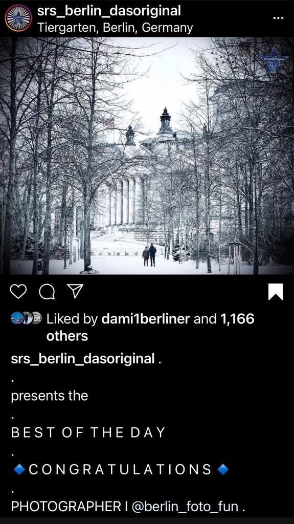 I’ve set up an Instagram page (berlin_foto_fun for anyone interested) and have gotten to “know” a lovely group of supportive IGers in the Berlin area.