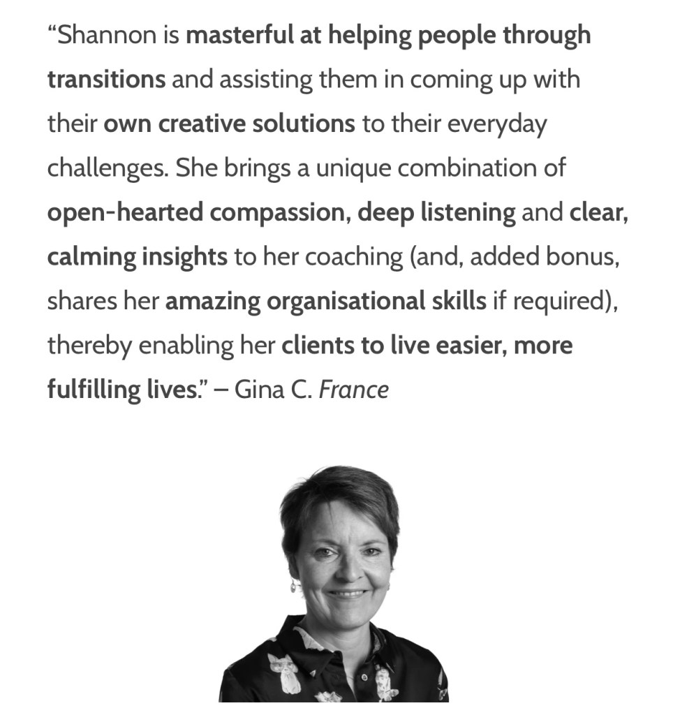 1. Congrats Shannon! This sounds rewarding and wonderful. I’m very excited for your new adventure. Best wishes on your new journey helping others. As a nurse, I see many, many people who would benefit from a life coach. On the medical side, I try to be that for them, but there are some people that I wonder how they even make it through one day. There is a big need for this service! Good luck to you! Best, Kara